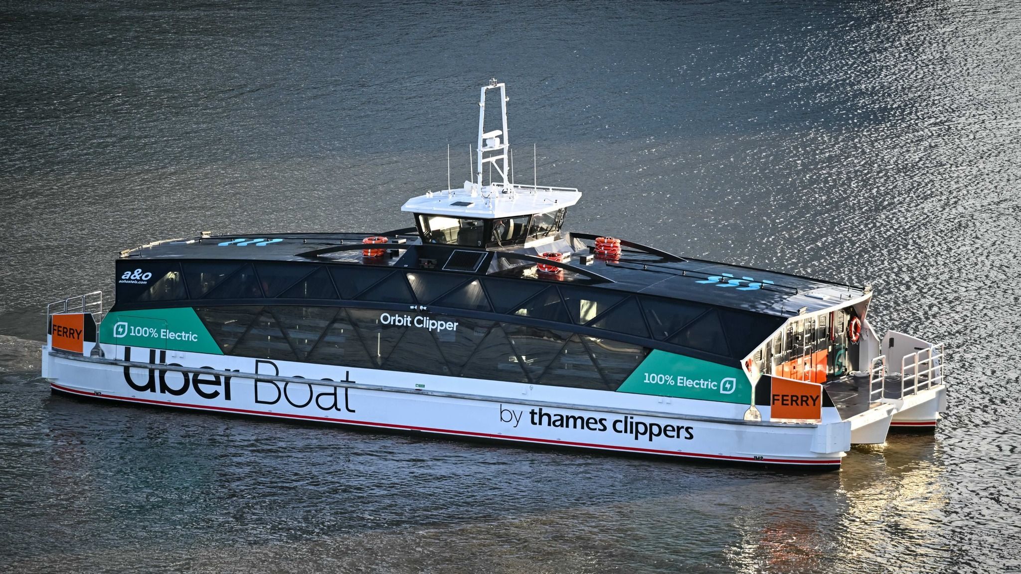 Uber’s new electric ferry “Orbit Clipper” at Canary Wharf. The fully electric Orbit Clipper ferry launched in December 2025, completing its first passenger crossing on Dec 5, 2025 and marking the UK’s first zero-emissions river bus service. Operated by Uber Boat by Thames Clippers, this zero-emission vessel now carries commuters and cyclists across the Thames between Rotherhithe (south bank) and Canary Wharf (north bank), with space for 150 passengers and 100 bicycles. As a dedicated river-bus shuttle, it operates about every 10 minutes on weekdays (15 minutes at weekends).