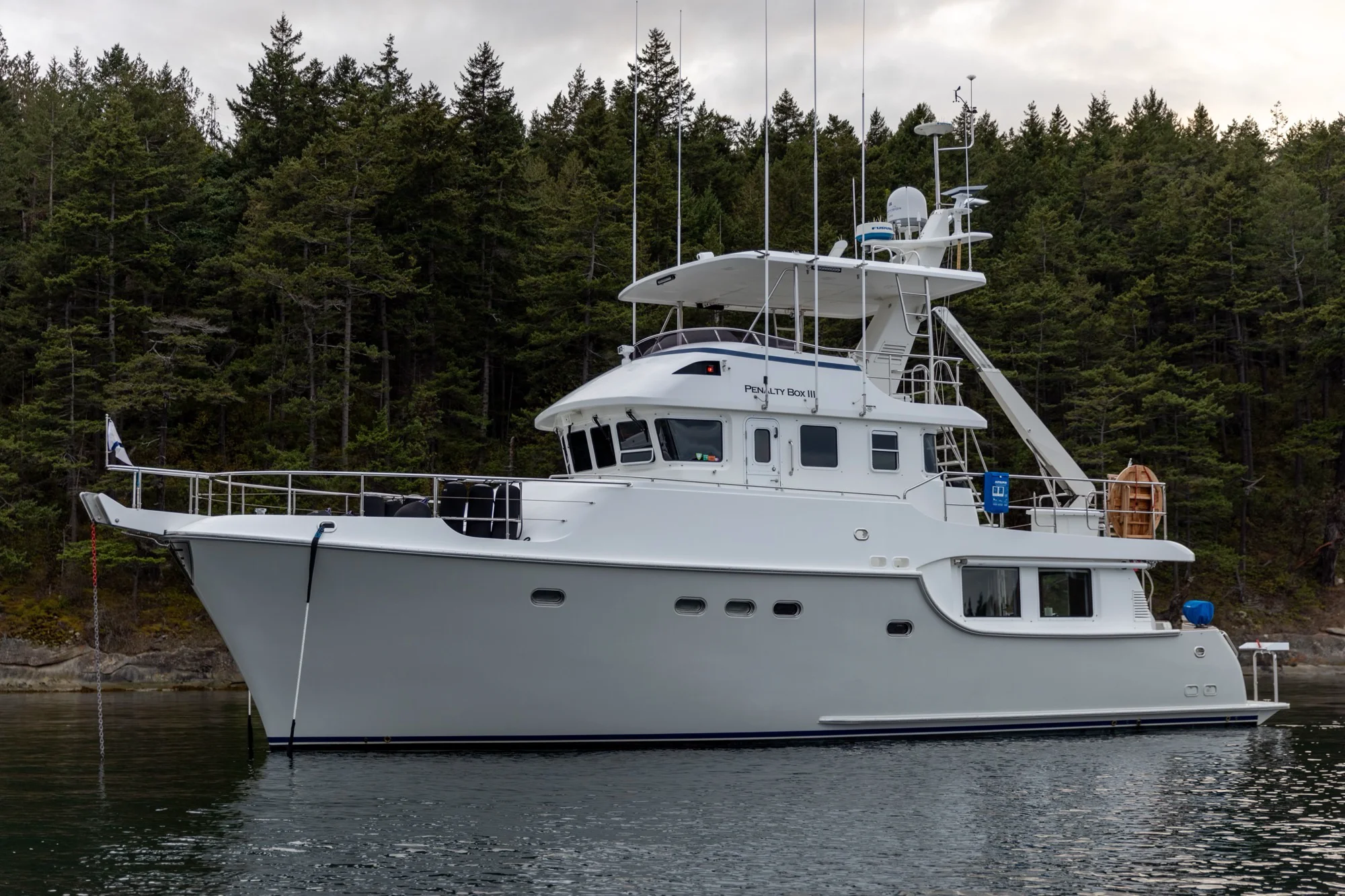 PENALTY BOX III is a pleasure craft sailing under the United States flag, measuring 18m in length and 6m in width. The vessel is currently moored at position 48.7571°N, 122.5052°W with destination reported as BELLINGHAM.